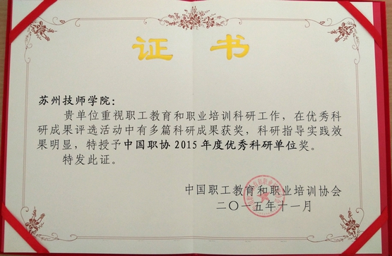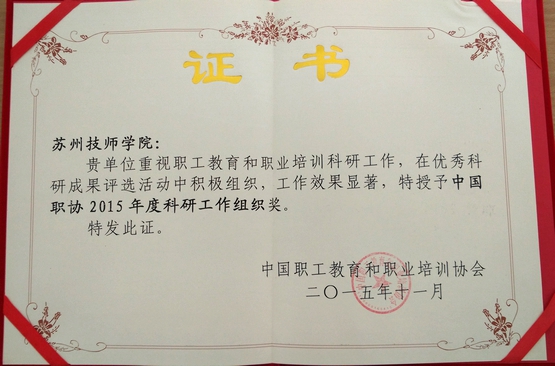 临近岁末,中国职协2015年度优秀科研成果评选传来捷报,通过网络测评、专家评审、集中评议和社会公示等程序,我院教师参评的成果从全国报送的科研成果中脱颖而出,再创佳绩。学院喜获一等奖8项,二等奖14项,三等奖30项,优秀奖35项,获奖总数达87项。学院同时获得“中国职协2015年度优秀科研单位奖”和“中国职协2015年度科研工作组织奖”双项荣誉。