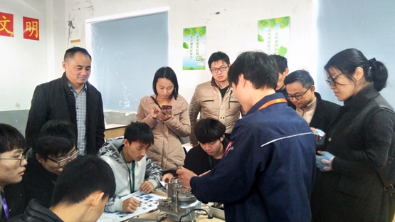 上午,老师们参观了机械工业苏州高级技工学校的数控实训车间,并观摩了支双林老师的行为引导型教学《立铣刀端面刃的刃磨》。支老师详尽的作业指导书给现场观摩的老师留下深刻印象。下午的专业讲座邀请来自苏州?云机械科技有限公司的总经理助理邢晓峰给各位老师介绍了“页岩气装备零件的加工”,邢晓峰结合目前苏州市状元大赛的技术要求,着重介绍了零件加工的新趋势“做精做细”,如螺纹加工后的倒角处理工艺等。精细加工的理念引起了在座专业老师的共鸣。随后老师们一行参观了苏州市越海拉伸机械有限公司,深入企业观摩、了解现代制造技术。