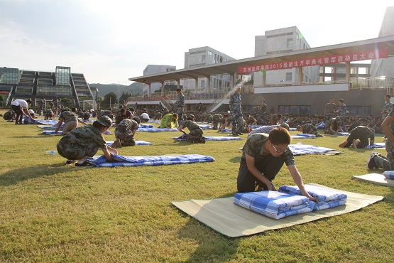 9月12日下午,住宿生带着被子在体育场上排着整齐的队伍成了一时靓丽的风景线,教官们娴熟的叠被子展示令新生们折服,在经过教官一小时后耐心指导,同学刻苦练习下,所有新生基本掌握了 “三分叠、七分整”的要诀,随后以系部、班级为单位层层选拔,将推选出的优秀选手代表系部参加院里比赛, 在紧张、激烈的气氛中,选手们各显身手,不甘落后,在经过认真整理,精雕细琢后,个个将被子叠成了“豆腐块”,在经过教官的严格评审后,机电1504班吴承睿等20名选手获得了优秀学员奖。