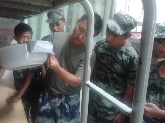 为培养15级新生有耐心、有条理、有效率的生活作风,营造整洁舒适的宿舍生活环境,9月20日18:30军训新生开展了以规范宿舍内物品摆放,被褥叠放,地面清扫为内容的军训内务整理活动。在教官耐心指导和新生的认真学习下,一床蓬松的棉被在简单的“叠、压、捋”几个动作之下,变成了四四方方的“豆腐块”,写字台上随意摆放的物品在经过几分钟的收拾后,变的规范有序,卫生间洗漱用品45°整齐排列,使新生在轻松愉悦的氛围中整理了内务,培养了他们良好生活习惯。