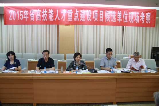 6月4日,由省人力资源社会保障厅职业能力建设处杨志霞处长带领的专家组一行5人对我院申报的2个省高技能人才重点建设项目进行了现场实地考察。市人社局职业能力建设处蔡旭卫处长、我院甘志雄院长、蔡崧副院长、教务处王丽华处长、项目建设负责人许志刚主任、许琪主任等陪同考察。