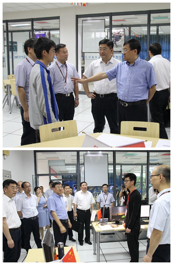 省集训队强化训练期间,省人社厅朱从明副厅长亲临基地,为选手和教练加油鼓劲。两位选手在全国选拔赛中表现出稳定的心理素质,发挥了过硬的技术水平,最终双双入围国家集训队,取得信息工程系技能竞赛的最好成绩。