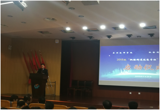 最后顾院长代表学院发表讲话,汇报了本次合作已获成果,也承诺学院将办好枫桥专班,“为苏州地区、为高新区、为枫桥街道培养出更多更好的高技能人才。”