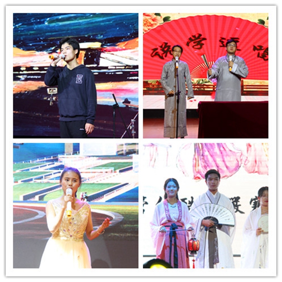 晚上6点30分,联欢晚会在Delay校园乐队的精彩表演中引爆全场;话言社和艺苑社合力打造的相声《匆匆那年》让人捧腹大笑,BK街舞社的舞蹈《MAKOSSA》迸发着青春的活力,嘻哈社的一曲RAP《不用去猜》再现流行风,古典舞蹈《虞姬项羽》演绎了一段凄美故事,雨鸢汉服社的舞台走秀《古韵汉服》展现着历史文化的深邃秀逸,新生代表的朗诵《致教官》、配合视频《教官寄语》将活动推向了新的高潮,歌曲串烧《真情永远》、古筝独奏《彝族舞曲》优美婉转,最后,晚会在院舞队的民族舞《且吟春雨》的婀娜柔美中落下帷幕。