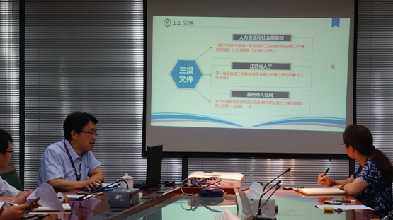 5月29日中午在图文中心四楼会议室,教务处组织开展了英国365集团官网教师职业能力大赛培训会,顾颂虞副院长、教务处王丽华处长、系部主任、大赛参赛教师参加了此次培训,电气系许志刚主任主讲,王丽华处长主持。