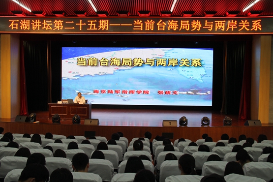 台海局势的话题,严肃而沉重,张教授的分析深入浅出、一气呵成,师生们不但清晰地了解了目前大局形势,更是明确了祖国统一的战略方针政策,坚定了国家处理台海问题的信心。