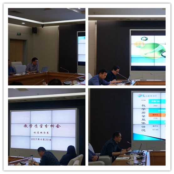 会上,教务处王丽华处长首先从学期整体情况、技能鉴定情况、各类考试情况、教学常规检查情况等九个方面,从学院层面对上学期教学质量做了全面系统的分析,通过与去年同期数据的对比,在肯定取得成绩的同时,王处长也指出了教学中存在的主要问题,并提出了相应的改进方向和措施。项目研发处陆志明处长主要从评教评学工作和教学督导工作情况两个方面,总结了我院上学期教学质量的总体评价情况。各教学部门负责人则通过对教师授课情况、技能鉴定考核情况、期末考试成绩合格率情况、统考通过率情况等多方面数据指标的横向和纵向的对比分析,对各自部门教育教学和管理工作的得失情况进行总结,亮出优点、查摆问题、剖析原因,并提出针对性的整改方案,明确了下一步的主要工作思路。