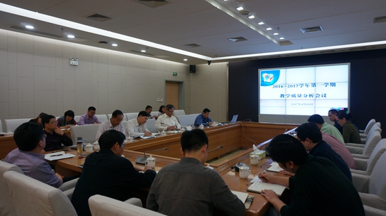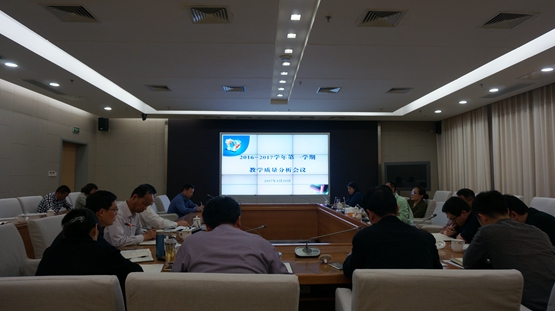 为全面提升我院教学常规管理水平和教育教学质量,总结分析教学工作运行的实际情况,4月20日下午,教务处组织召开了我院2016-2017学年第一学期教学质量分析会议,全体院领导出席会议,教学条线各部门的相关负责人及教研组长参加了会议。会议由蔡崧副院长主持。