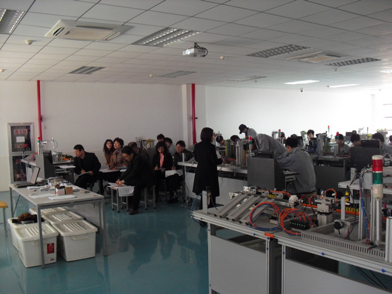 在随后的评课会议上,许志刚主任将10级一体化教学试点情况和本堂课的背景做了介绍,金勤明处长、夏国亭主任、王丽华主任、陈锦燕主任和其他听课老师对人社部一体化试点班教学成果作了高度评价,对