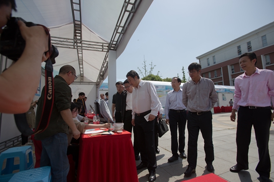 下午1:45,苏州市副市长曹后灵等领导驻足于我院两位大师的展台前,观摩学生展示,并和大师们亲切交谈,了解行业最新技术和相应专业高技能人才培养情况。
