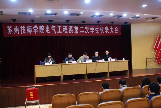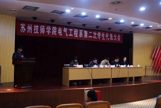 会议在庄严的国歌声中拉开序幕。机电工程系吴凡副主任、院学生会副主席钱亚萍分别致以贺词。上一届学生会代表高伟同学向全体代表做了学生会工作报告,报告全面细致,得到了代表们的肯定。本次学代会的主题是选举新一届学代会委员。代表们在仔细聆听了11名候选人的介绍后,慎重的进行了投票。在选票统计过程中,电气工程系主任许志刚向新一届学生会提出了四点要求:一要勇挑重担,积极奋进;二要以身作则,规范工作;三要树立理想,脚踏实地;四要追求卓越,示范引领。学工处常灯铭处长勉励新一届委员树立服务理念,勇于开拓创新,善于学习,力争做“德技双馨”的技能人才。代表们用热烈的掌声回应领导们的殷切希望。