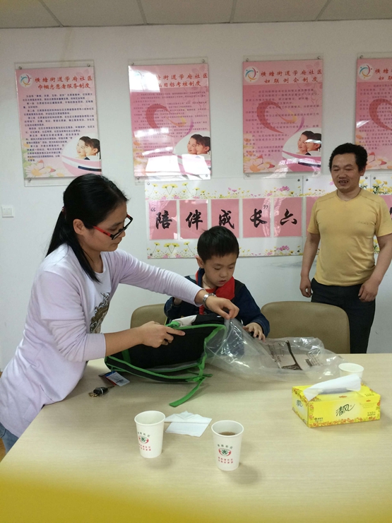 当天我院教师党员和学府社区工作人员,早早就来到了学府社区儿童活动中心等候。冯皓小朋友在父亲的带领下准时来到社区活动室,与冯皓及其父亲交流后,详细了解了冯皓和他哥哥最近的生活和学习情况。然后,党员同志耐心地辅导小朋友做作业,认真检查批改作业,教小朋友练习英语,并带去了支部为小朋友精心准备的书包、练字本等文具用品,作为“六一儿童节”的礼物,提前为小朋友过“六一”。懂事的小冯皓很是开心,家长为此也很感激,感谢学院长期以来对小朋友学习和生活上的帮助。