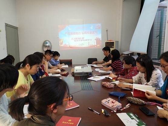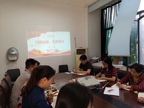 为深入贯彻落实习近平总书记关于扫黑除恶专项斗争的重要批示精神和党中央、国务院关于开展扫黑除恶专项斗争的重大决策部署,扎实开展好扫黑除恶专项斗争工作,6月24日下午,第一党支部在匠心楼会议室开展“扫黑除恶,党员先行”主题党日活动,活动由支部书记常灯铭同志主持。