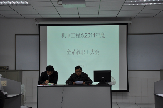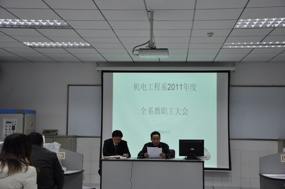 此次机电系2011年度全系教职工大会的召开,为全系教师提供了一个交流的平台,使全系教职工进一步同意了思想,明确了明年的工作任务和重点,大家能够一如既往的以高昂的斗志努力工作。