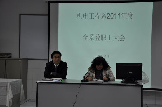 2011年度的系工作总结会,机电工程系创新了模式:由各教研室主任对各自教研室的全年工作进行了总结和回顾。在经验交流中,模具教研室王明宇主任、机加工教研室计丽娟主任、精密测试技术教研室赵淳主任结合各自专业的特色及全年开展的工作进行了全面的总结,对存在的问题进行了透彻的分析,客观的评价了各自全年的成果和不足。精密测试技术教研室施泉洲老师是2011年我系脱产下企业顶岗实习的教师,在会上,他向大家汇报了近半年来的顶岗实习情况,并交流了自身的体会。