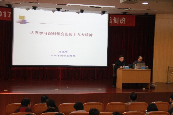 为深入学习贯彻习近平总书记系列重要讲话精神,进一步宣传领会十九大会议精神要义,12月6日下午,在会议中心一楼报告大厅,学院特邀中共苏州市委党校副校长孙坚烽副教授为全体党员开设解读十九大会议精神的讲座。