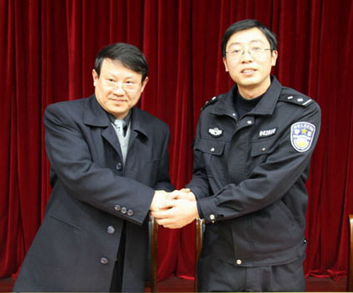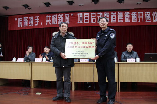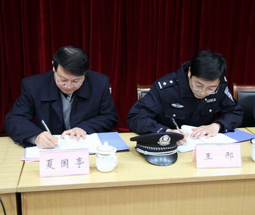 仪式上,信息工程系夏国亭主任介绍了项目的主要情况并和市公安局金阊分局团委王邢书记签订了项目共建协议,王邢同志还代表金阊分局授予信息工程系“警院携手,共树新风”道德、法制项目建设基地铜牌、授予项目建设志愿者服务队队旗,并提出了希望。