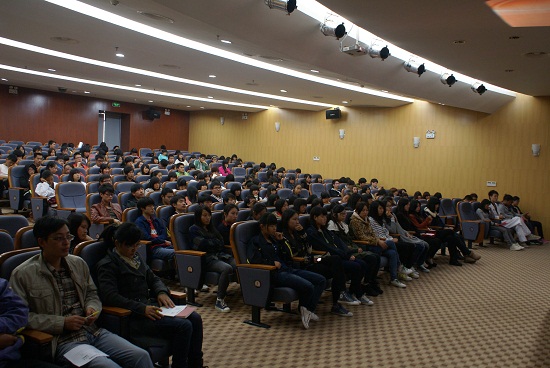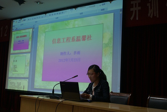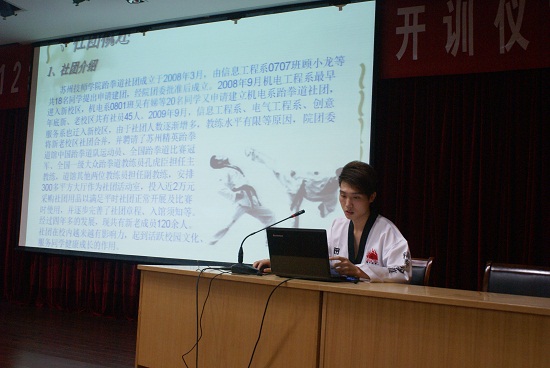 当天下午,入围社团的社长和社员代表们早就来到了会场,做好了最后的冲刺准备,其中一位社团负责人说,从上学期末开始,经过各系评选推荐、社团联合会审核、院团委复核诸多评选环节,他们一路过关斩将进入最后角逐,已实属不易。3点整,评选活动准时开始,各社团各显神通,或自制视频回顾活动、或PPT展示精彩瞬间,图文并茂向大家展示了各自的社团文化与特色,最终经过观众投票,话研社、跆拳道社、温馨社、淘宝社荣获2012学院精品社团荣誉称号。