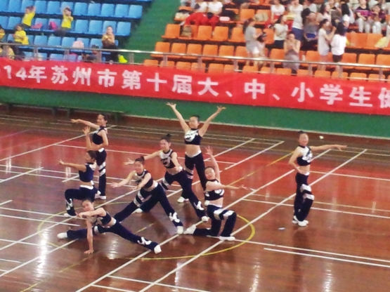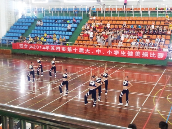5月31日,“迎世乒2014年苏州市第十届大、中、小学”健美操比赛在苏州市第一中学体育馆举行,来自苏州市几十个学校的100多个运动队,1500余名选手参加了比赛,本次健美操比赛分为小学组、初中组和高中组、技校组、中专组、大学组六个竞赛组别。赛前,各参赛队都做了精心的准备。比赛中,各队在创编内容、队形变换、服装设计、动作力度、动作难度、成套音乐等方面都有很好的体现,展现了苏州学生的精神风貌,在场的领导和评委老师无不被运动员们火一样热情的舞姿所感染。