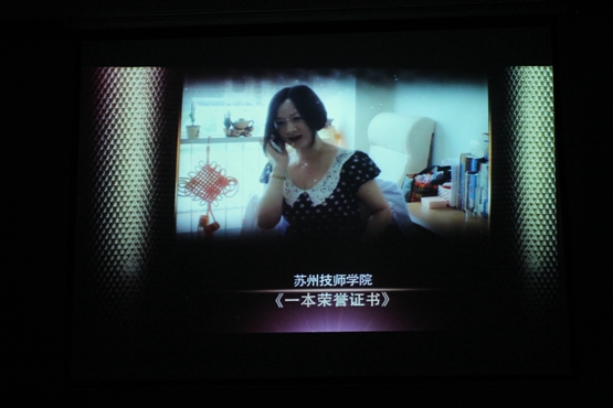 12月12日下午苏州国际教育园首届“科技技能节闭幕式暨微电影大赛颁奖仪式”在苏州经贸职业技术学院图书馆二楼报告厅隆重举行。国际教育园各所院校微电影摄制组的领导和演职人员观看了18部微电影的节选。在经过专家组的严格评选后,我院微电影《一本荣誉证书》获得了一等奖。