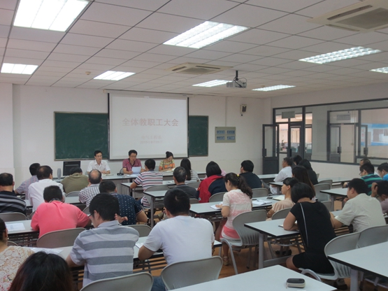 电气工程系教师在各级各类培训、各类资料整理、实训设施设备维护等工作中度过了一个繁忙而充实的暑假。许主任在汇报了暑期6项工作后,对新学期的工作作了明确布置。许主任强调新学期我系的工作要围绕“一个竞赛、两个课程体系、三个基地建设、六个课题”开展。新学期的准备工作要做到“三准备、四明确”,各位教师要备课充分,上好第一堂安全教育课,更要将安全意识融入到日常教育教学中。