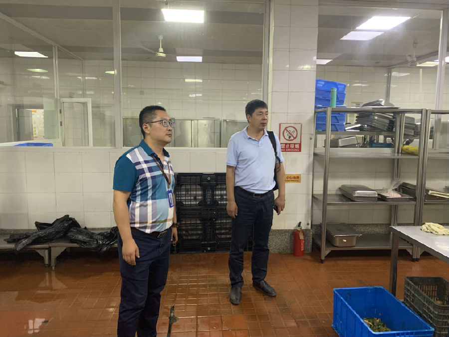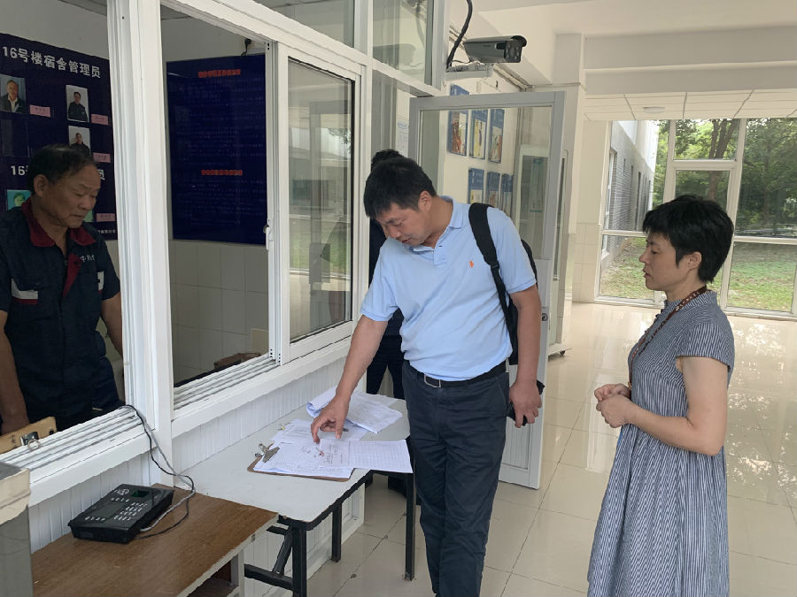 检查组在安全保卫处处长王静芬、副处长王坚峰的陪同下首先进入食堂进行检查。谭调研员仔细查看了操作间的用水、用电、用气、安防设施运行情况,并对食品卫生安全提出了具体要求,他强调,食堂管理人员一定要加强食堂的安全检查,确保用水、用电、用气及食品卫生安全,定期对油烟管道进行清洗,要对食堂员工进行安全知识培训。在学生公寓区,谭调研员通过询问宿管人员值班值守情况,查看值班记录本、进出人员登记表等方式进行检查,对学生公寓的安全管理情况比较满意。