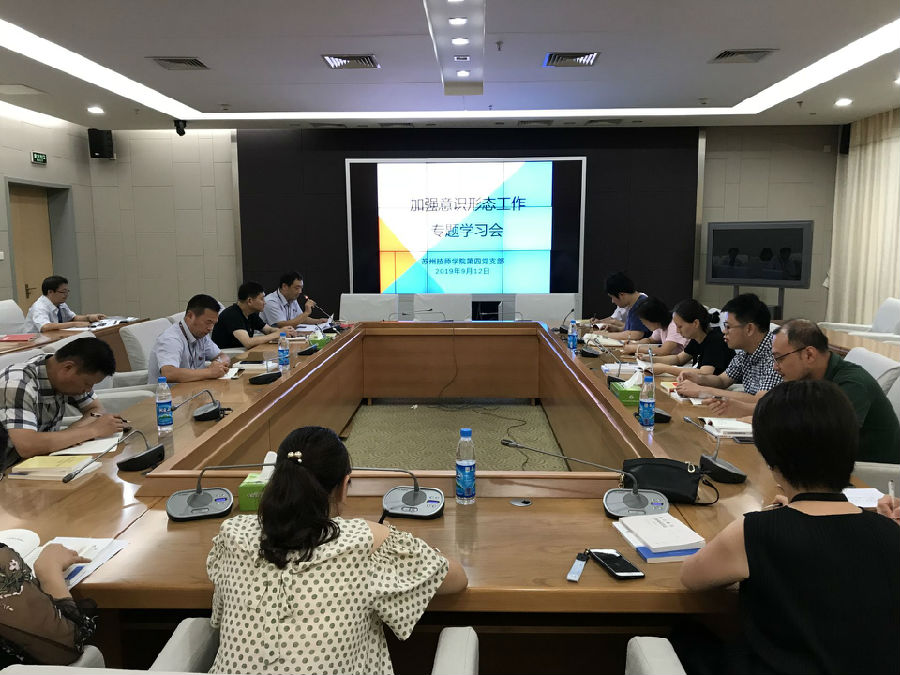 为深入推进学习贯彻习近平新时代中国特色社会主义思想和党的十九大精神,根据局党委的指示要求,9月12日,英国365集团官网第四党支部在学院国际报告厅开展了加强意识形态工作的专题学习和党员“政治生日会”两项活动。活动由第四党支部书记张永乐组织实施,全体支部党员参加了会议。