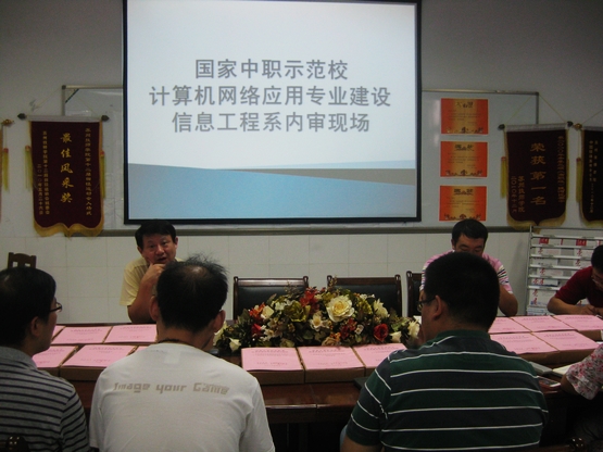 会上,夏主任首先介绍了示范校验收的时间表、评审的方法、各种材料的验收要求、教学资源的配置等内容。接着,李明华和鲁毅两位老师分别从示范校建设的内容、示范与辐射和数字化校园建设等方面佐证材料进行了总结汇报。在认真听取汇报的基础上,与会人员就有关示范校建设材料中的问题进行了交流讨论,提出了很好的建议。最后,夏主任就示范校建设和内审工作讲了三点意见:一是高度重视,全力做好示范校建设终期验收和评估各项工作。二是强调示范校验收时间紧迫,争取在有限的时间内将示范校的材料整理清楚、完整,使评审专家在网上能清楚地了解我系创建示范校建设以来所取得的成绩。