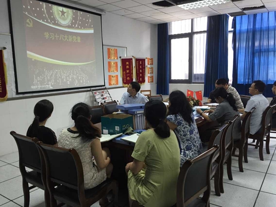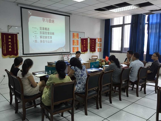 张永乐书记带领大家回顾了历届党章的内容。对新党章进行了深入解读,强调“中国共产党始终代表中国先进文化的前进方向,代表中国最广大人民的根本利益”。在座的每一位党员都作了发言,畅谈了学习党章和重温入党誓词的体会,表示将把党章的具体内容落实到上好课教好书的本职工作中。