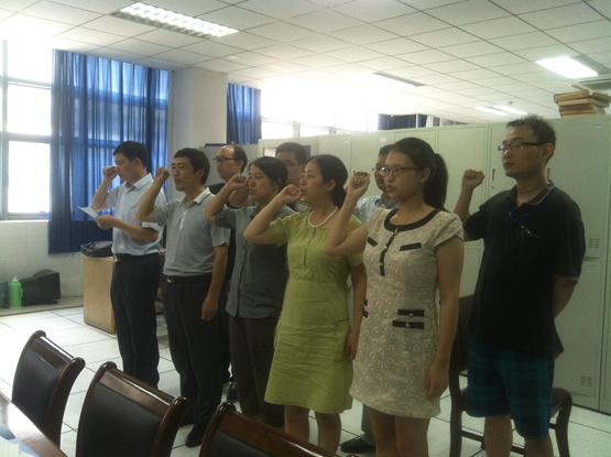 党章是党的总章程,是全体党员必须共同遵守的根本行为规范。为了使每一位党员同志牢记入党誓言,规范自己的言行,英国365集团官网第六党支部于2015年6月25日下午在信息工程系办公室举行了“学党章,重温入党誓词”活动。全体党员参加了本次活动的,会议由张永乐书记主持。