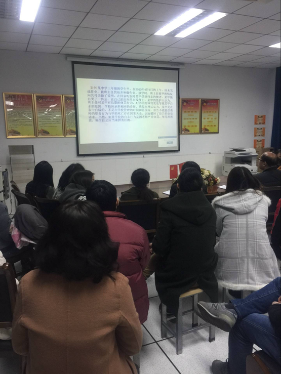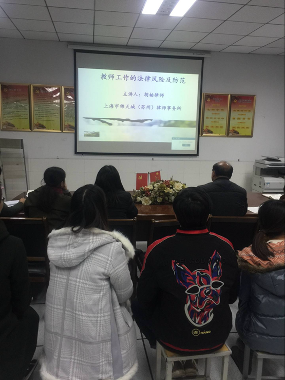为了帮助教师处理学生在校期间发生种种突发事件时,该如何尽可能的在法律范围内保护好自身合法权益。2018年12月13日下午,信息工作系邀请到了上海市锦天城(苏州)律师事务所的胡柏律师在信息系教师会议室为全体班主任做了《教师工作的法律风险及防范》的主题讲座。