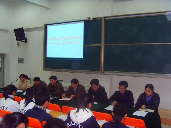 创意服务系召开首届团代会、学代会 创意服务系首届团代会、学代会于 本次大会的召开得到了院系各级领导 会上,经选举分别产生了系第一届团总支委员会和系学生会。新当选的学生会委员代表首届学生会向全体同学发起倡议,倡议同学们努力学习、掌握技术、开创美好未来。