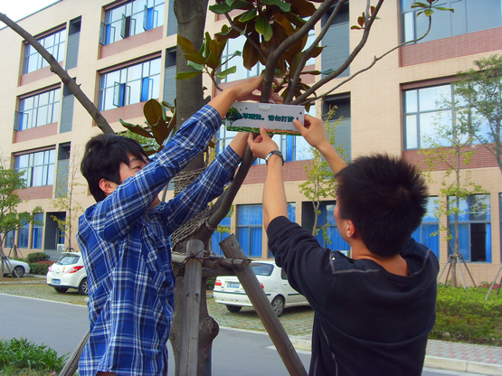 二是各支部以承包分配的方式在“环境月”中负责打扫校园各公共绿地的卫生,并统一悬挂环保倡议标识;